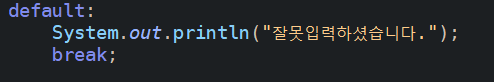 주로 default를 통해서 간단한 사용자의 입력 예외에 대한 부분을 처리한다. (Exception 예외처리는 나중에 작성하겠습니다..)