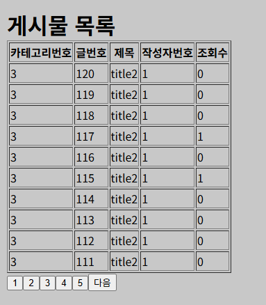 해당 게시물에서는 게시물목록을 출력할 때, 페이지를 구분해서 게시물 n개씩 나눠서 보여줄 수 있도록 하는