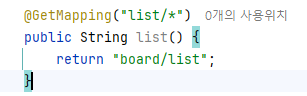 그래서 위에 board/list/ 로 시작하는 어떠한 요청이 오더라도 일단 board/list.jsp를 포워딩해준다.